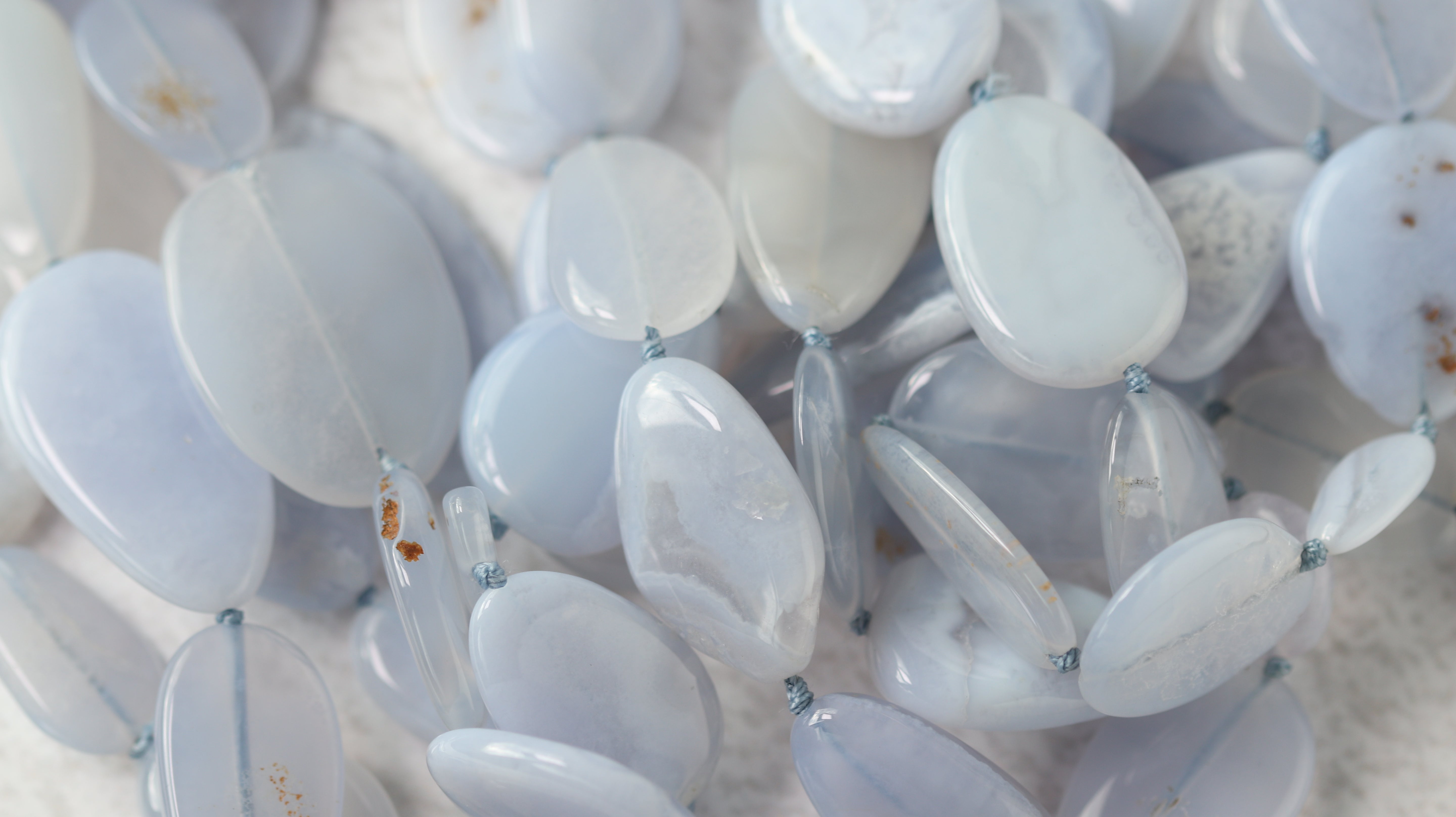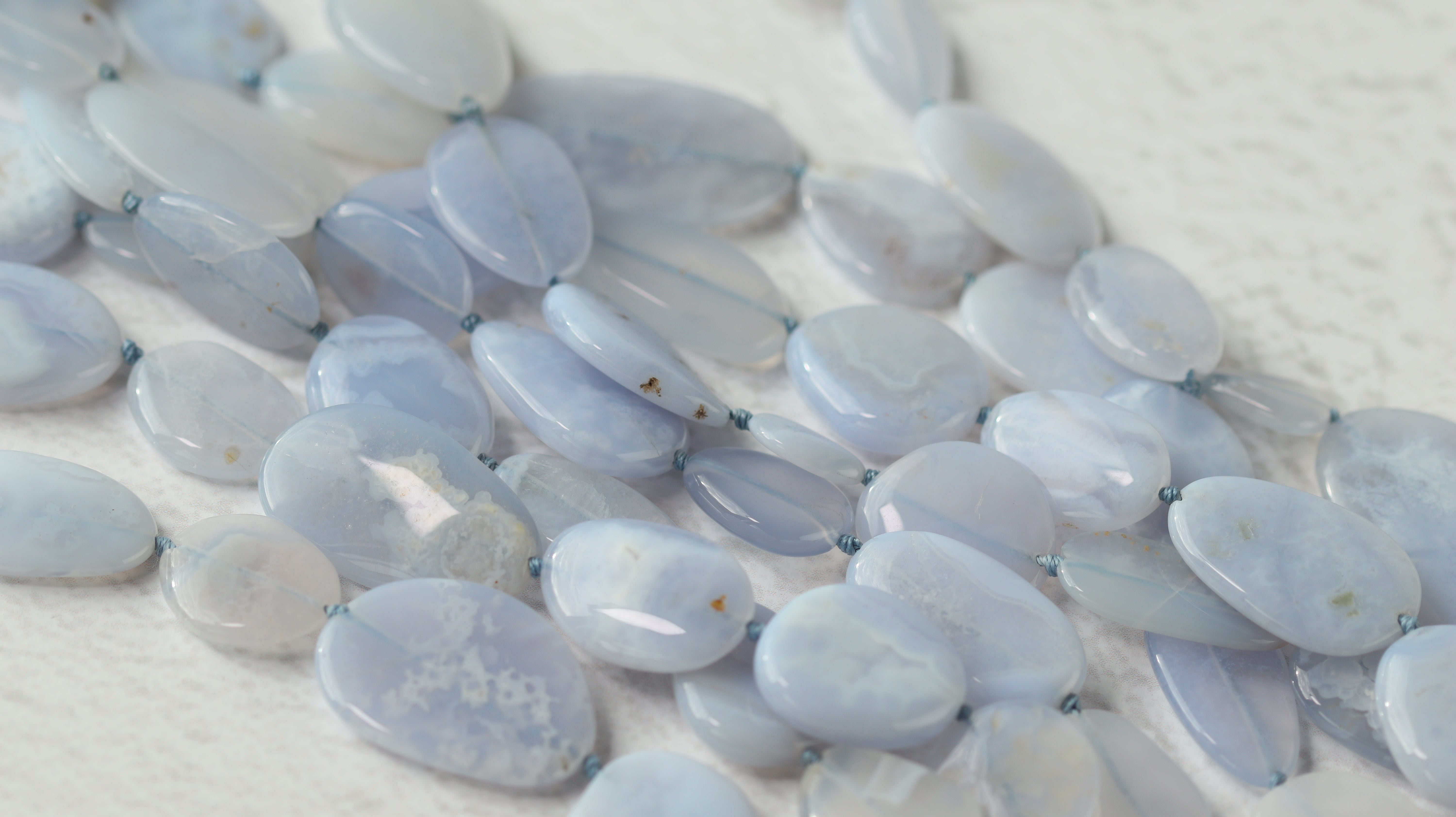 ブルーレースのスーパーロングネックレス。