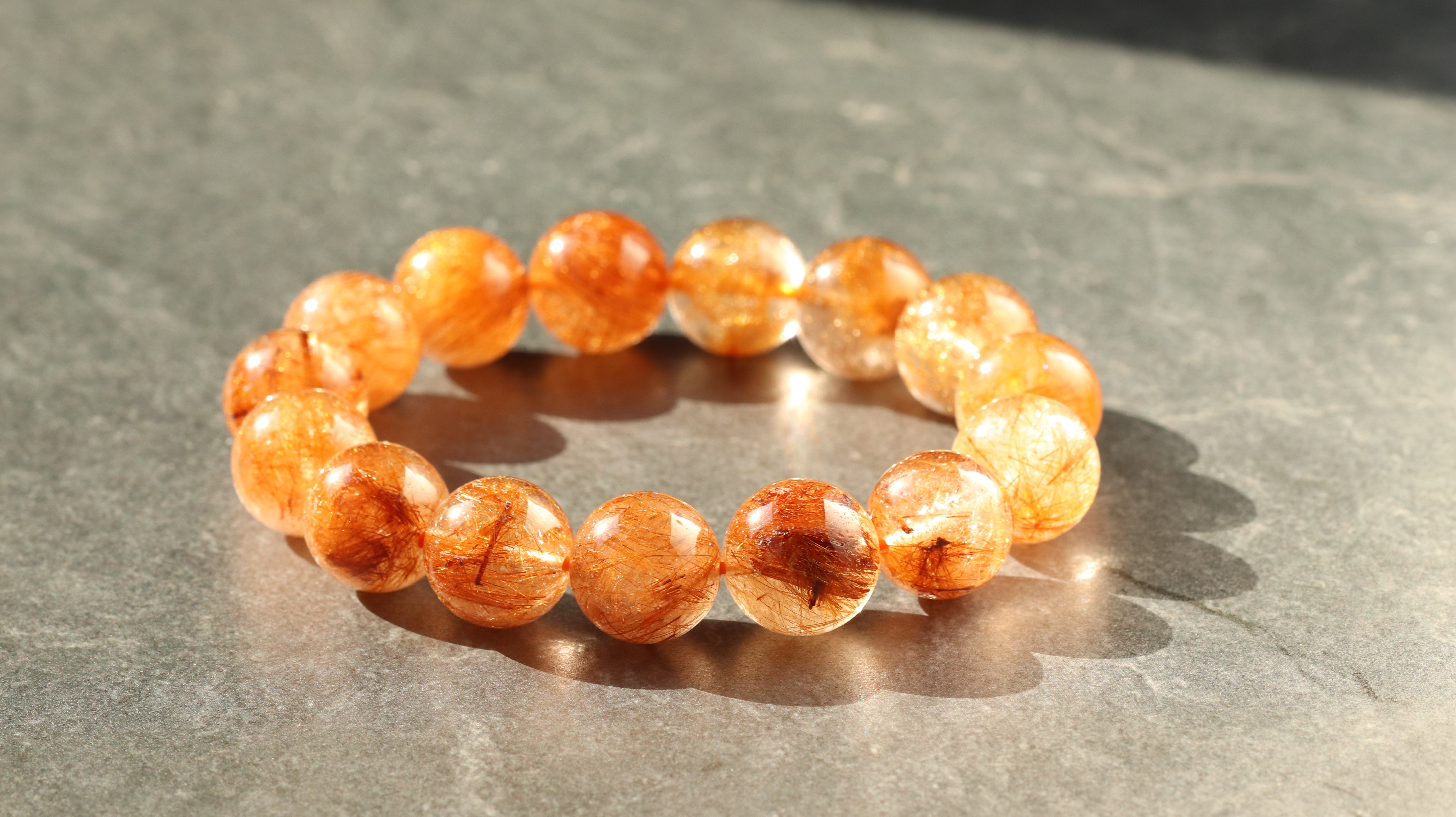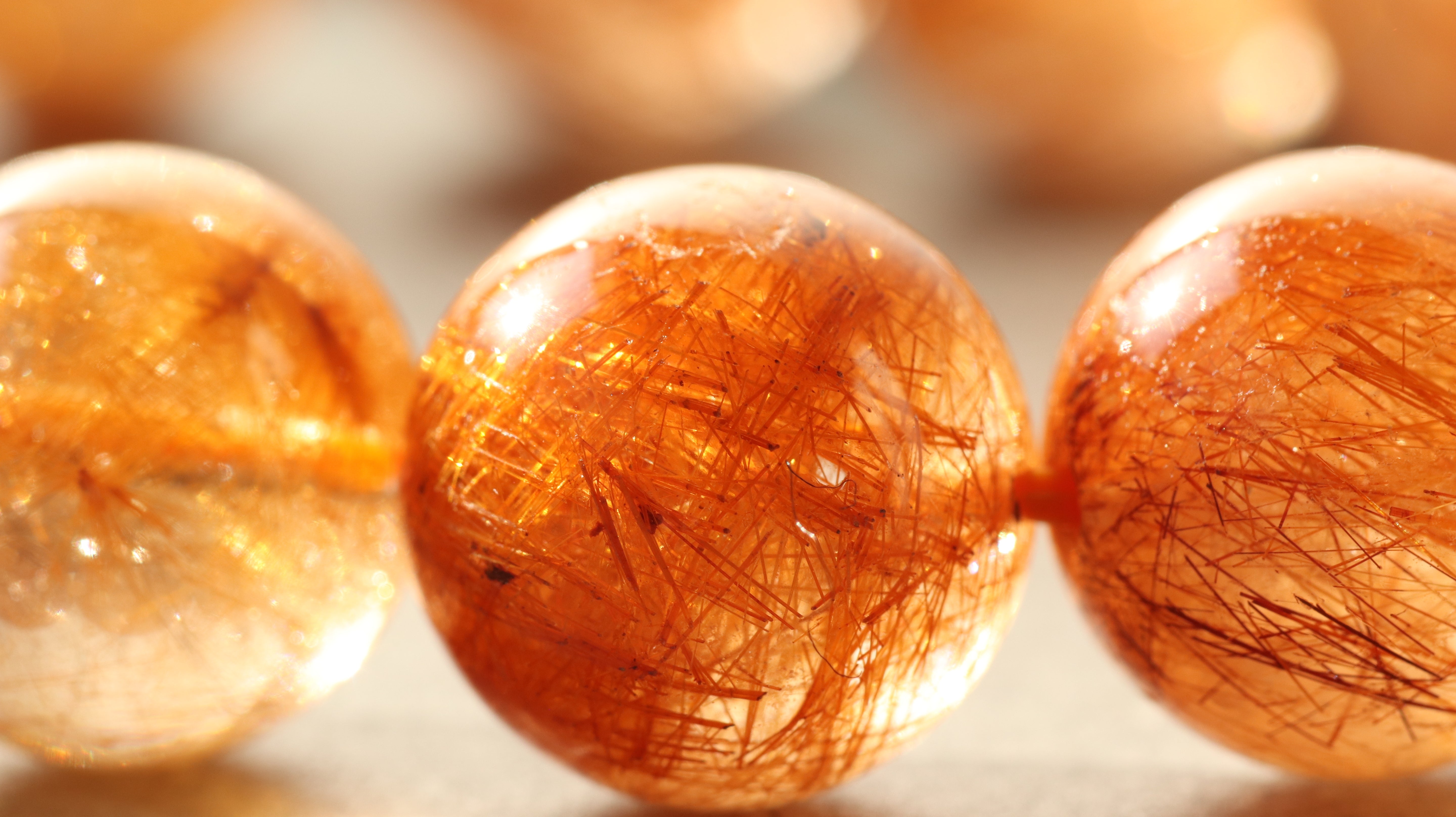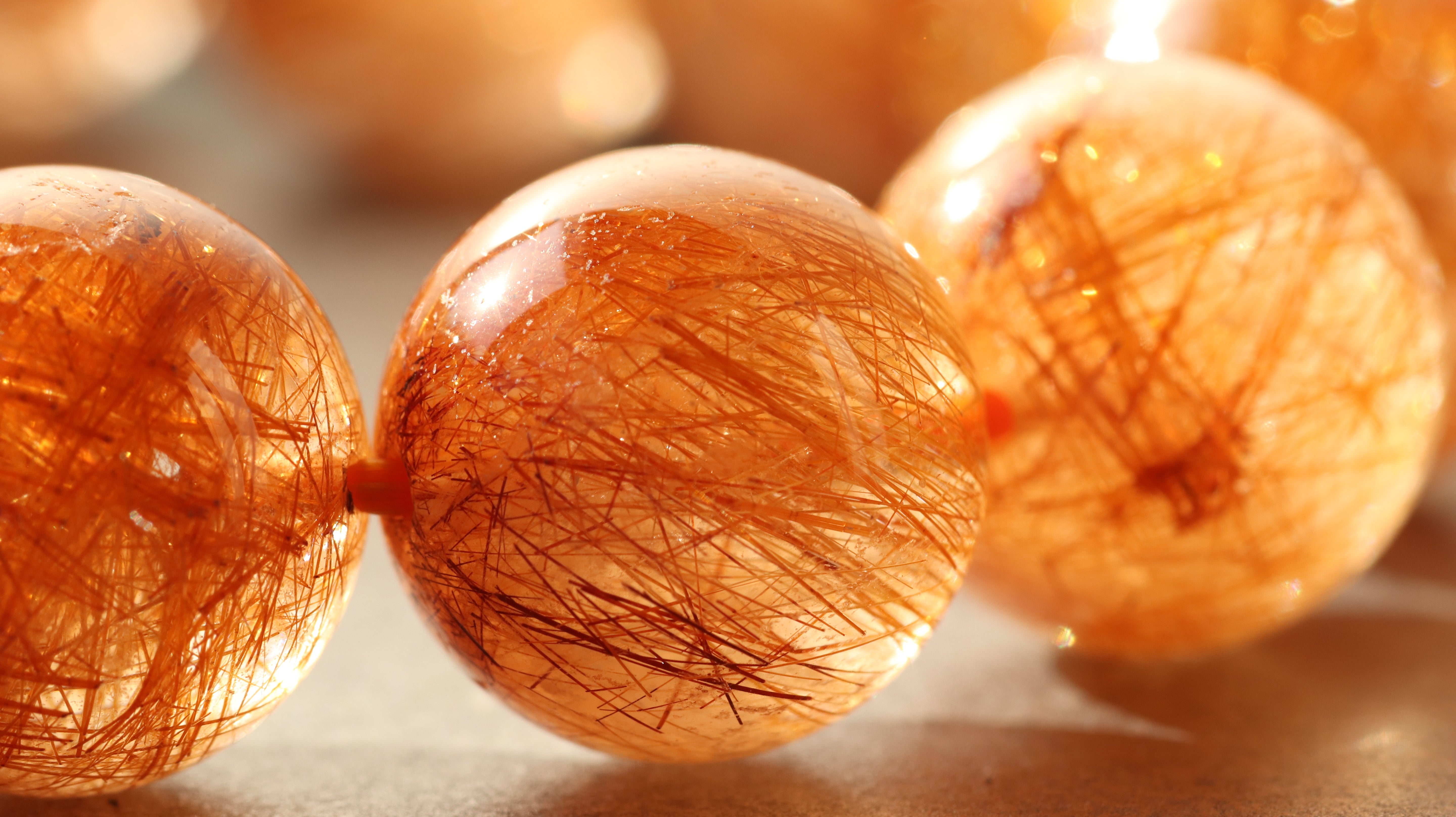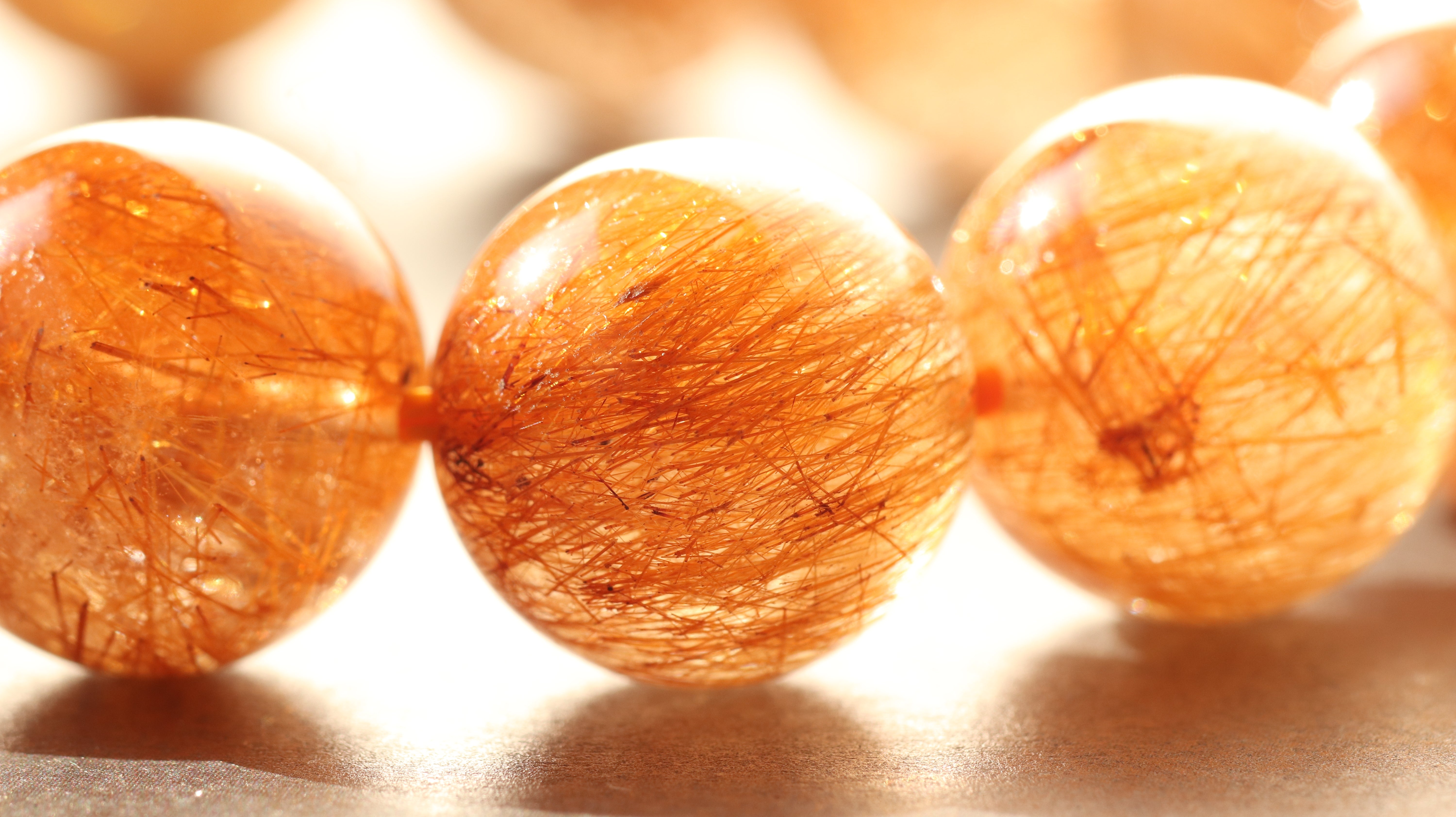 赤みを帯びた金色から深みのあるブロンズのような輝きを放つルチルクォーツ。ブラウンにも、レッドにも、コッパーにも見える奥行きのある色彩が光の角度によってさまざまな表情を見せてくれます。