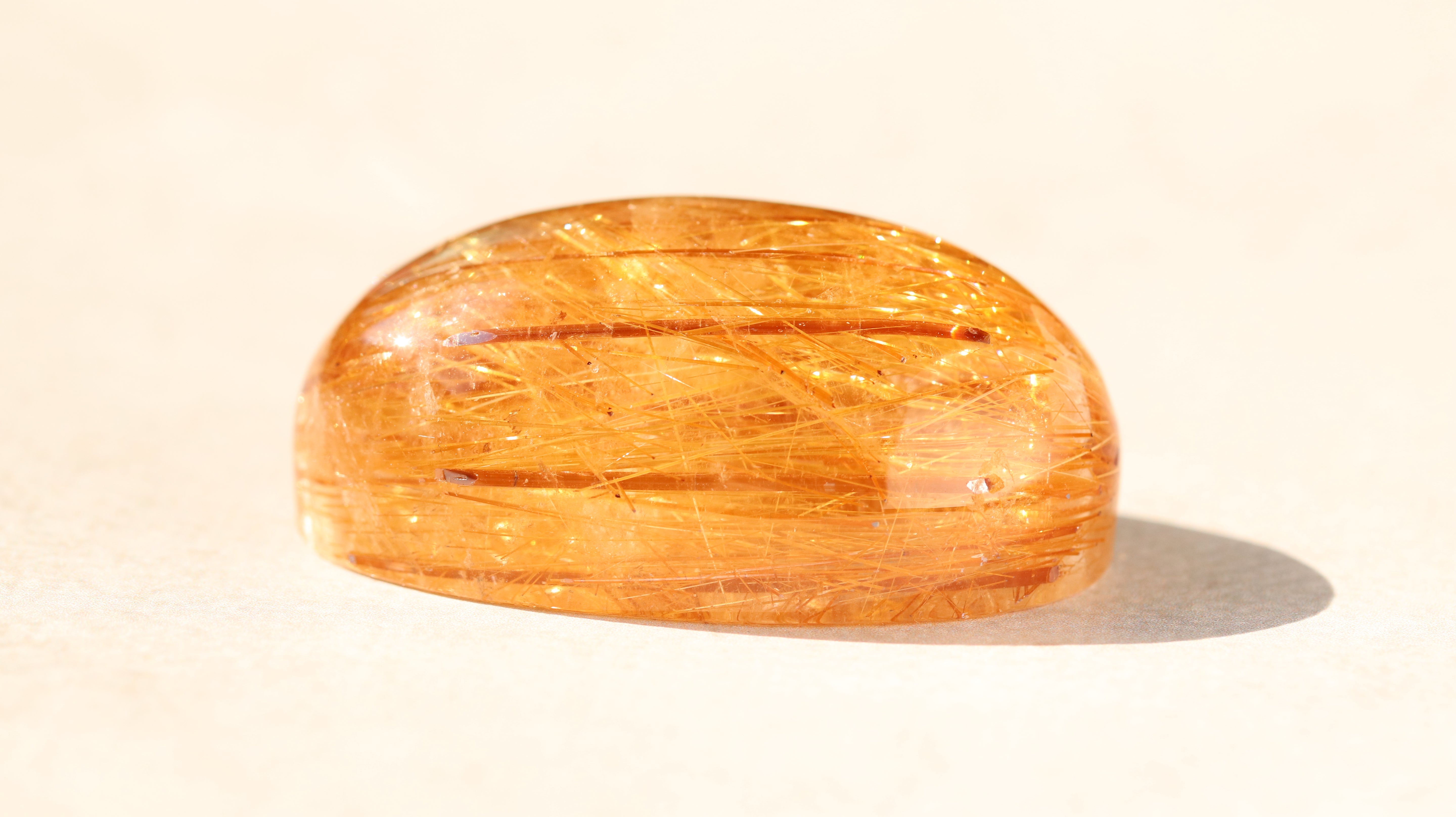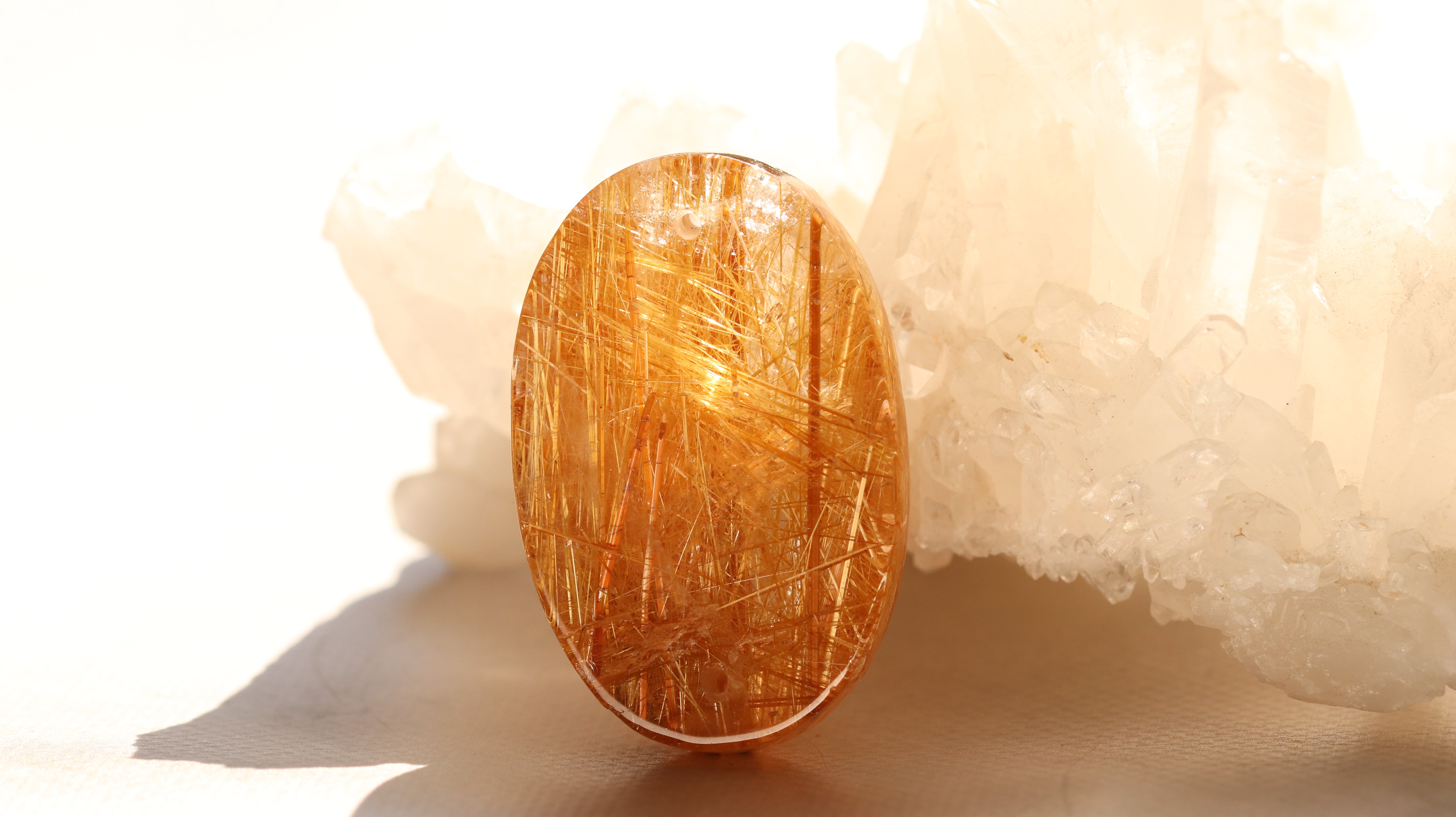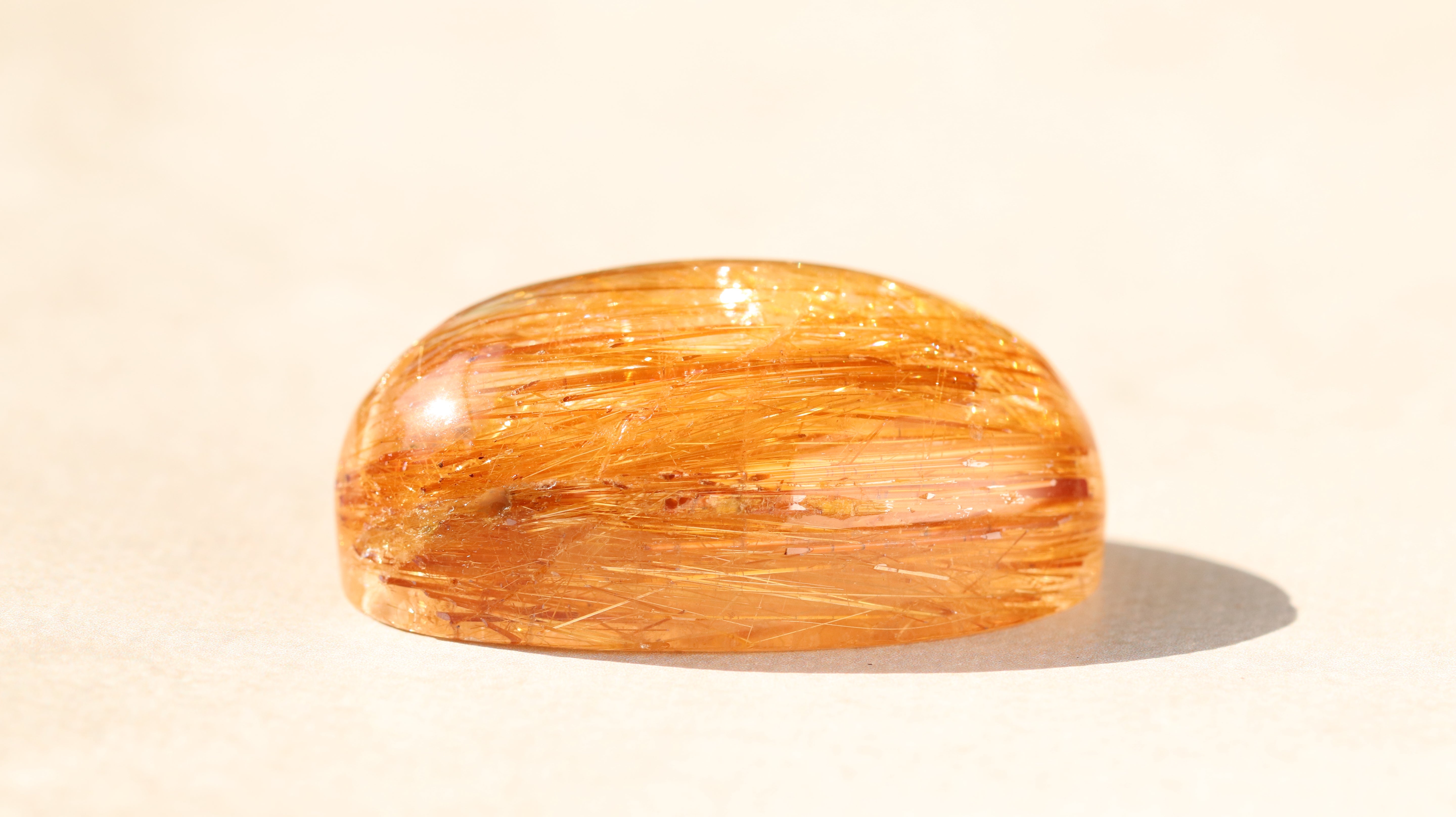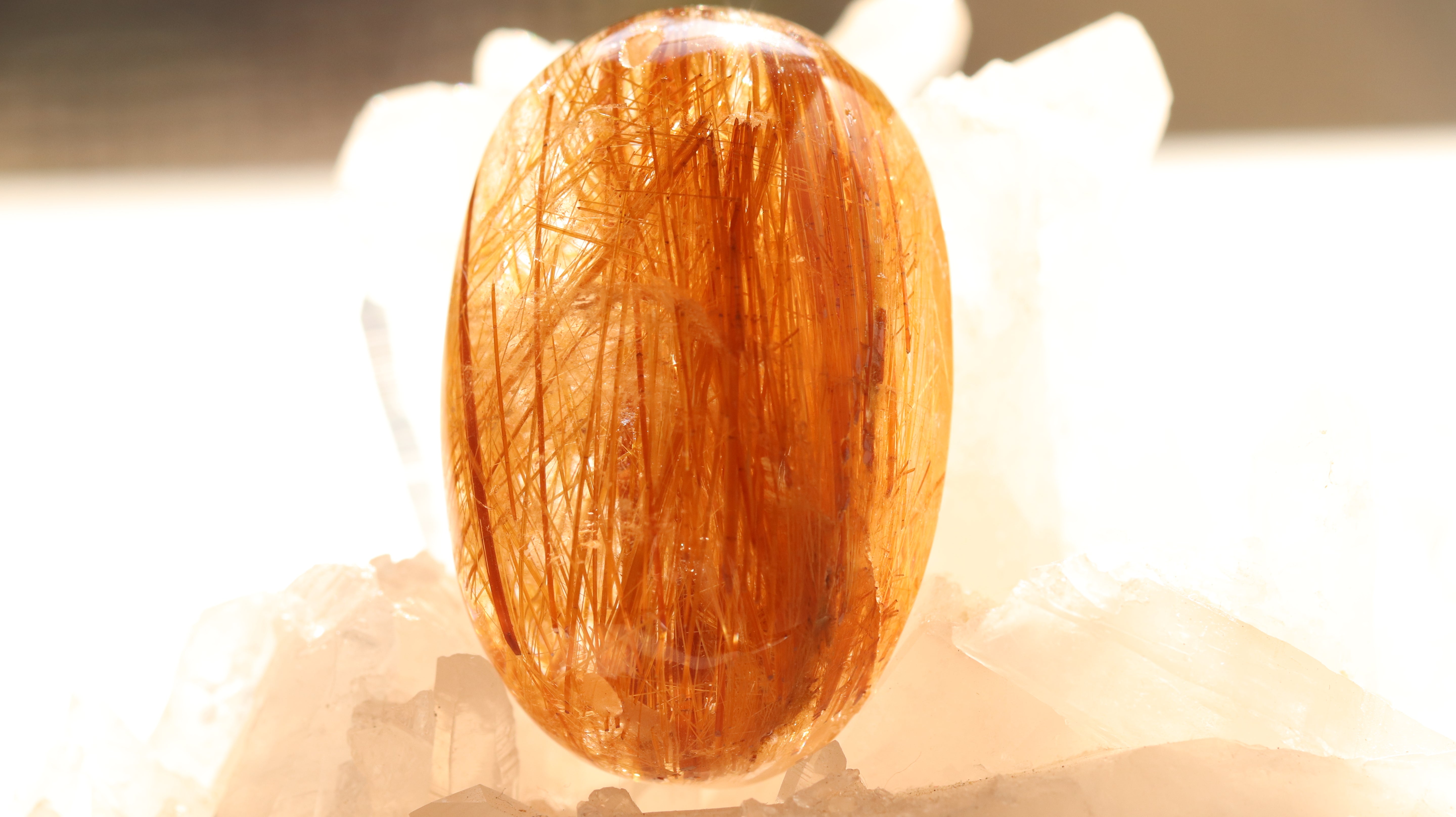 光を受けるとルチルに沿うような輝きとクォーツのクリアな透明感が共鳴し、奥行きのある立体的な美しさを楽しむことができます。