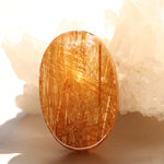 透明度の高いクォーツの中に、しっかりとした存在感を放つブラウンゴールドのルチルが堂々と伸びる上質なルースです。