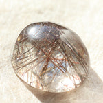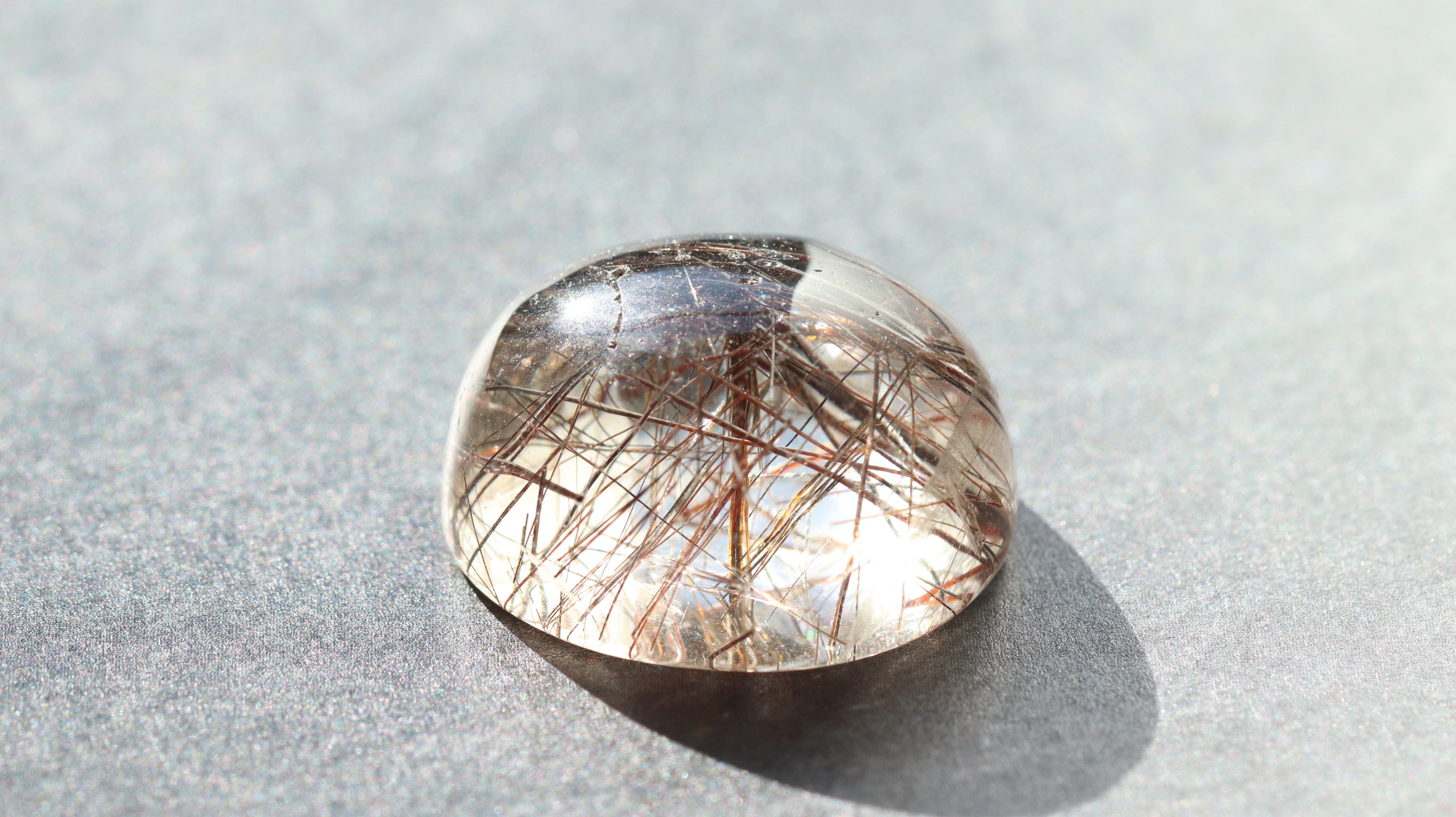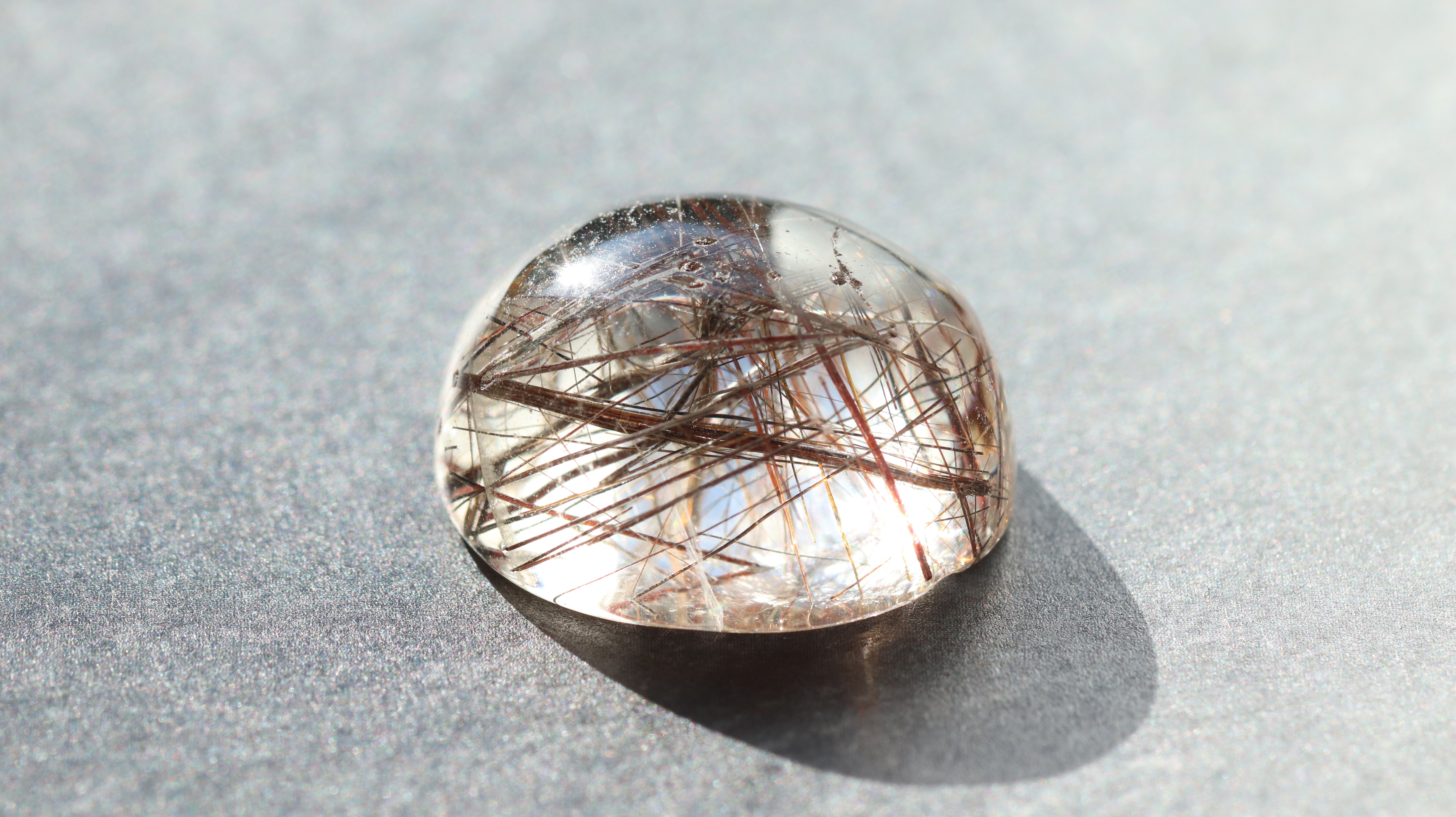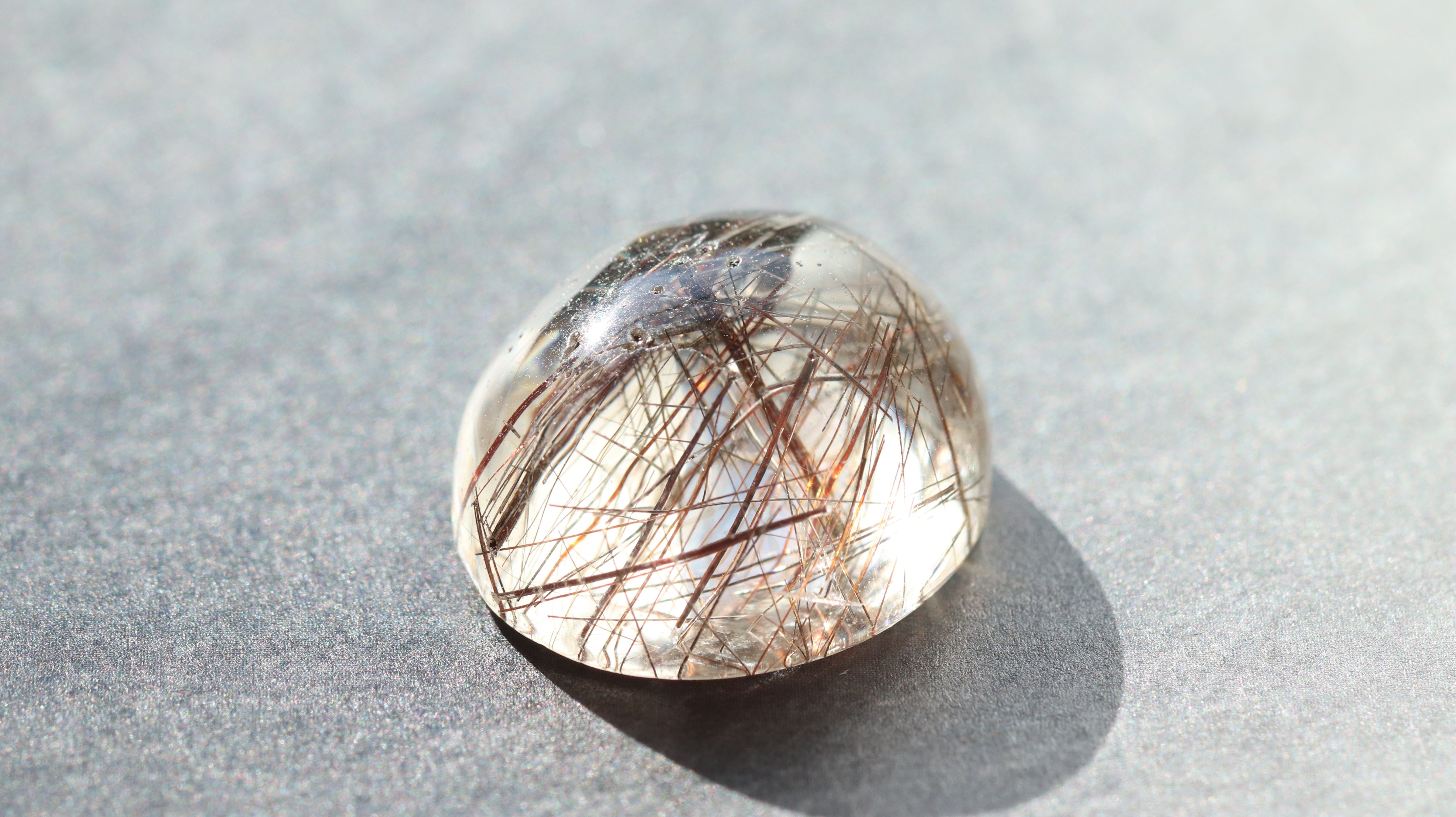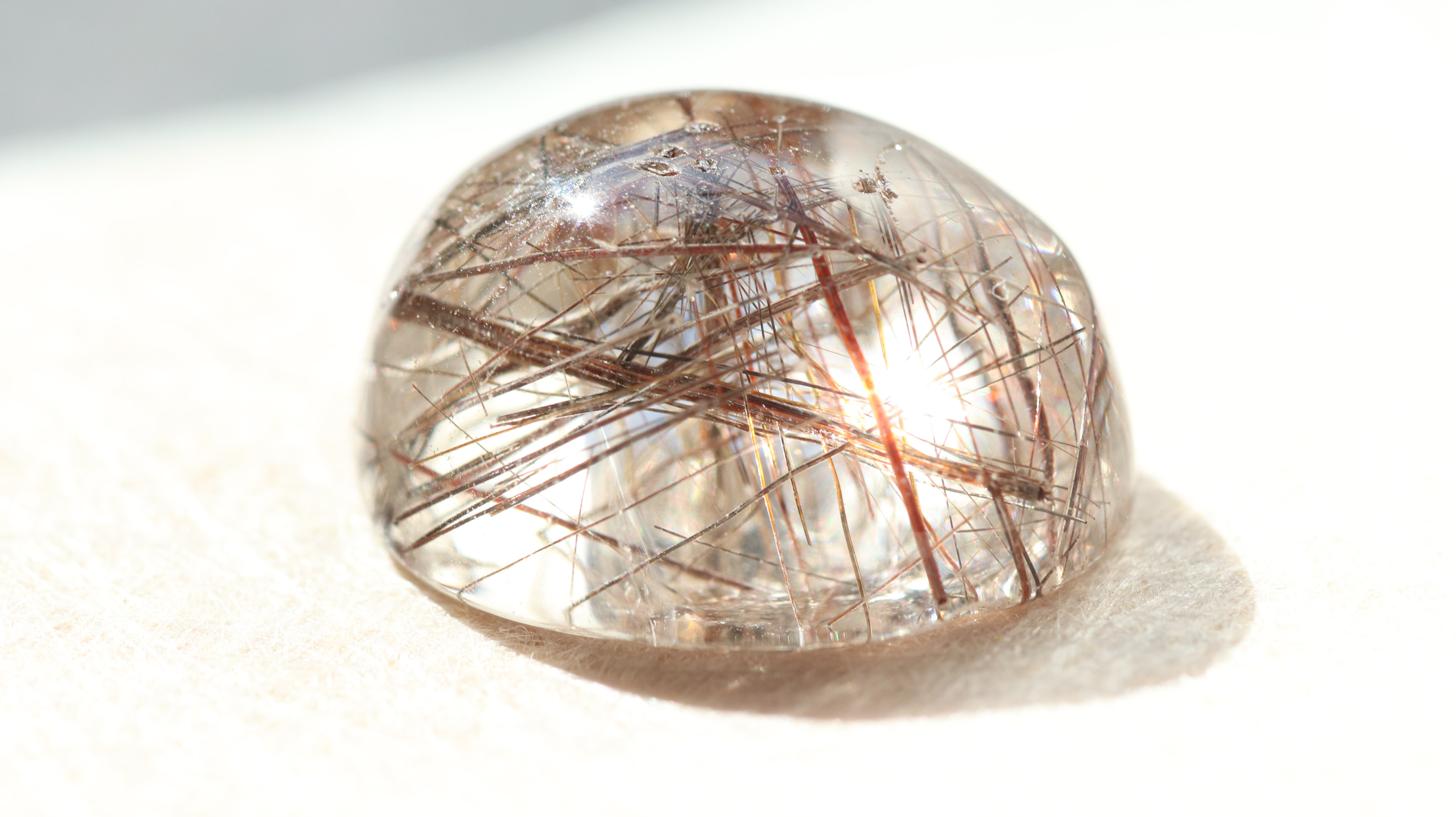 柔らかなコロンとしたフォルムが光を包み込み、ルチルの一本一本が美しく浮かび上がります。