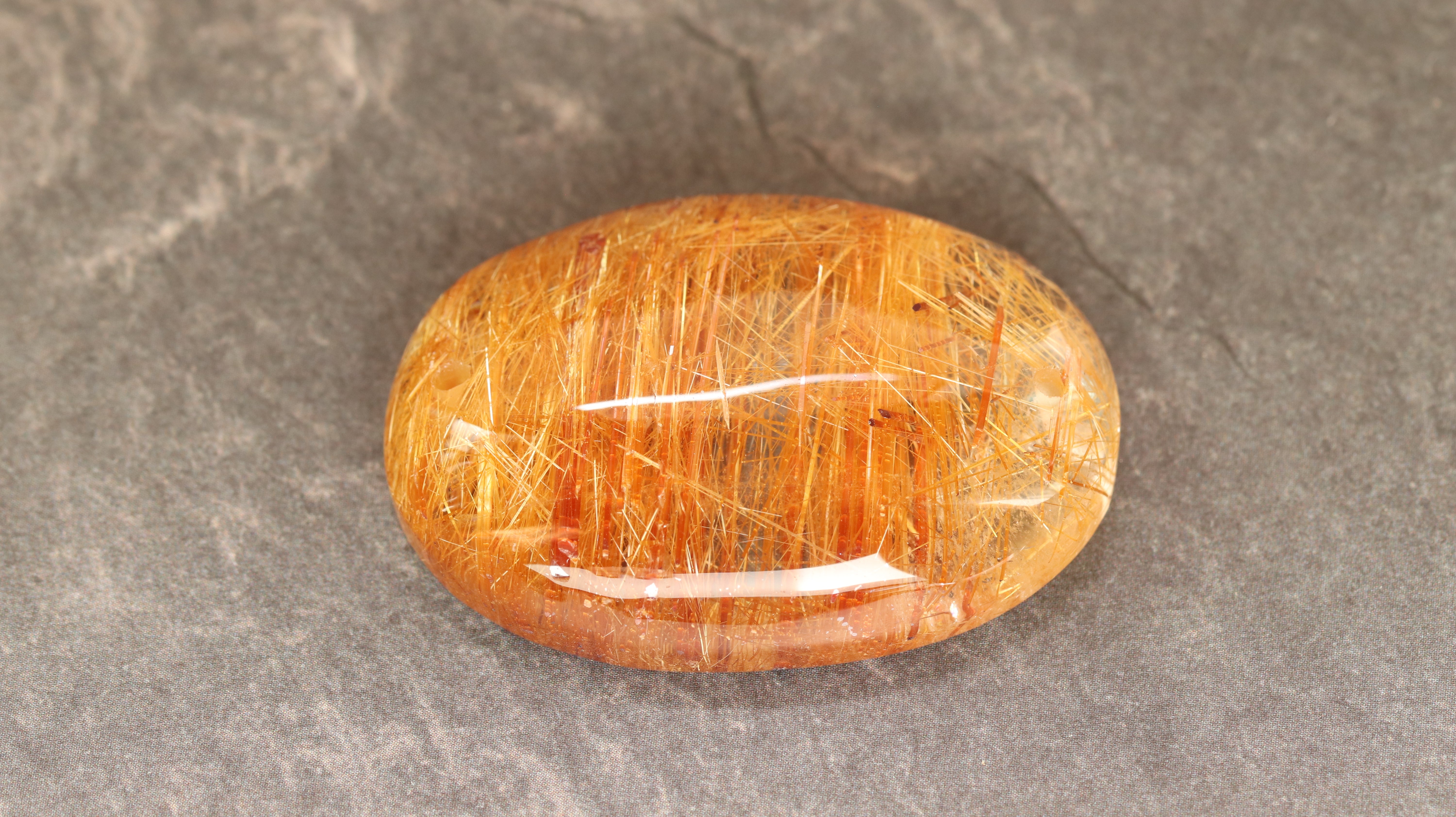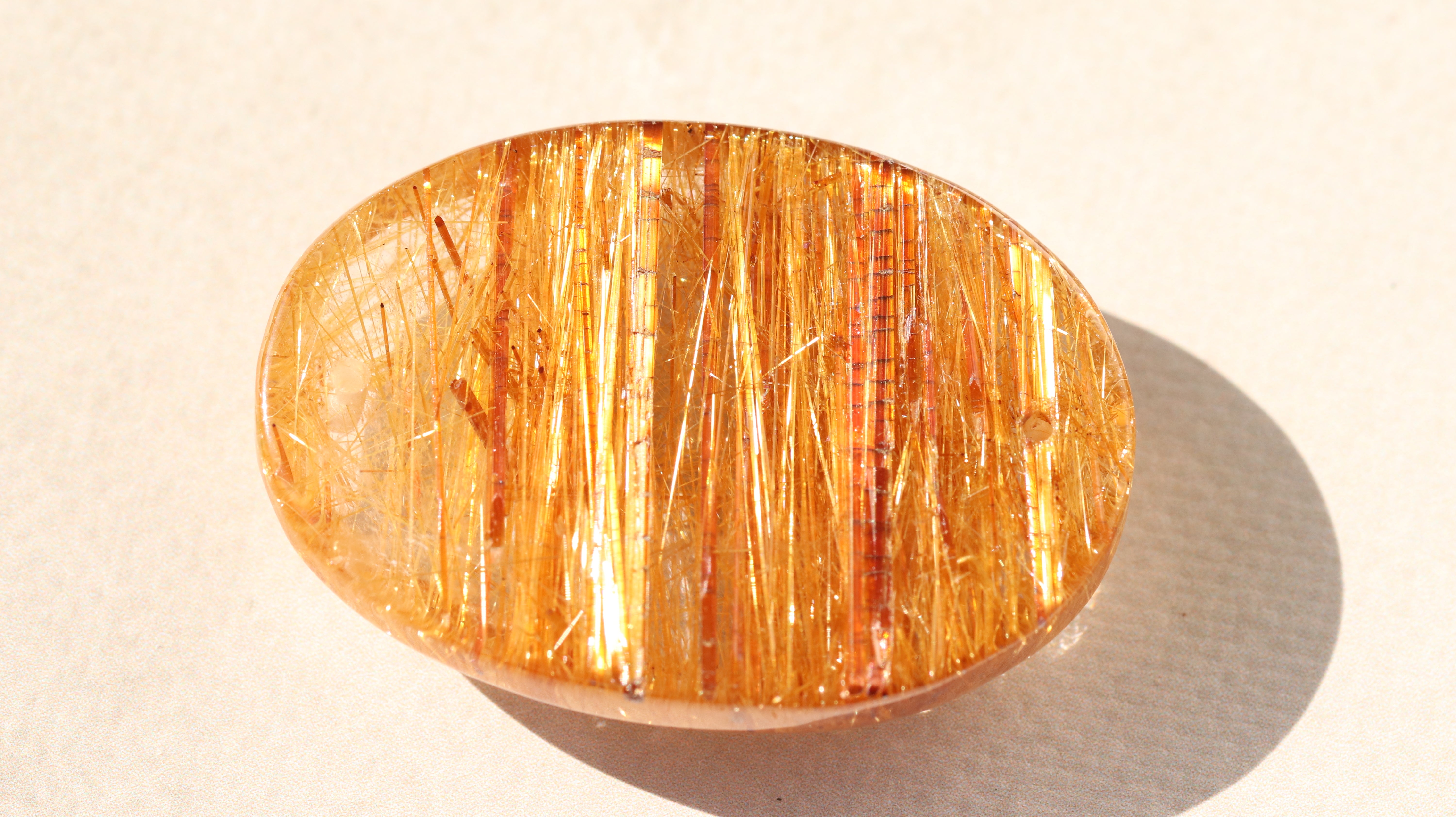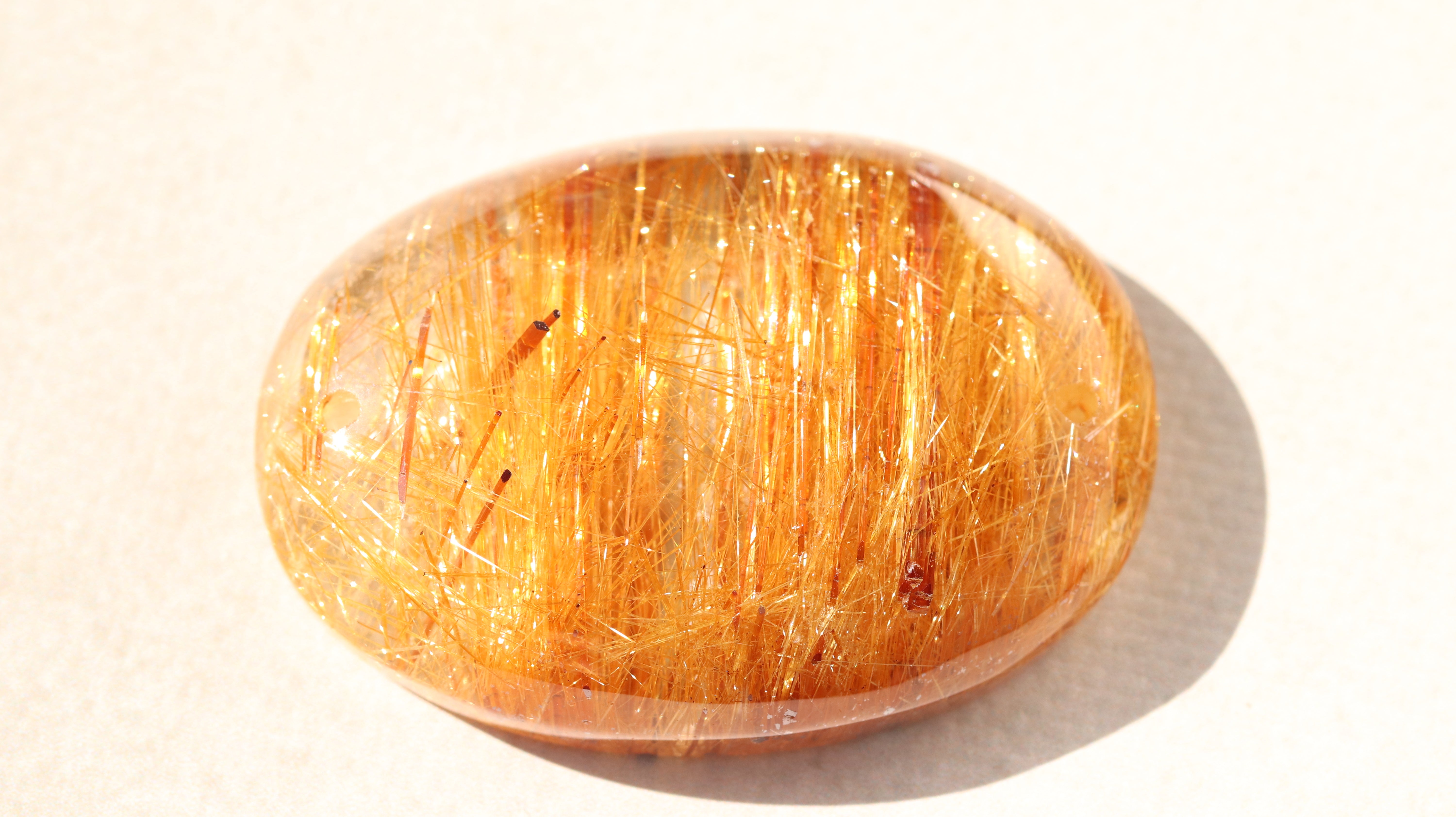 透明度の高いクォーツの中に、しっかりとした存在感を放つブラウンゴールドのルチルが堂々と伸びる上質なルースです。