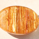 光を受けると、ルチルに沿うような輝きとクォーツのクリアな透明感が共鳴し、奥行きのある立体的な美しさを楽しむことができます。