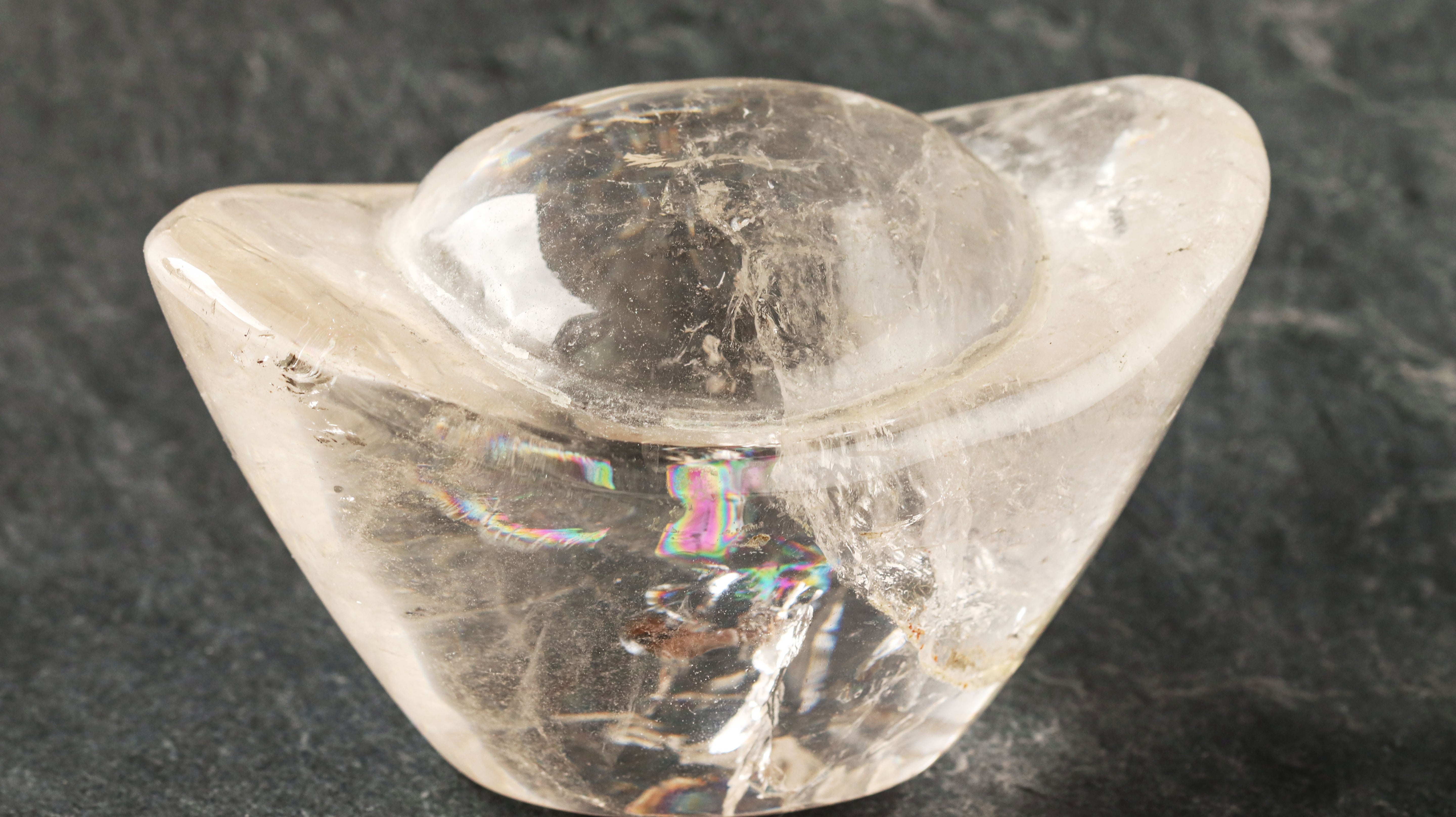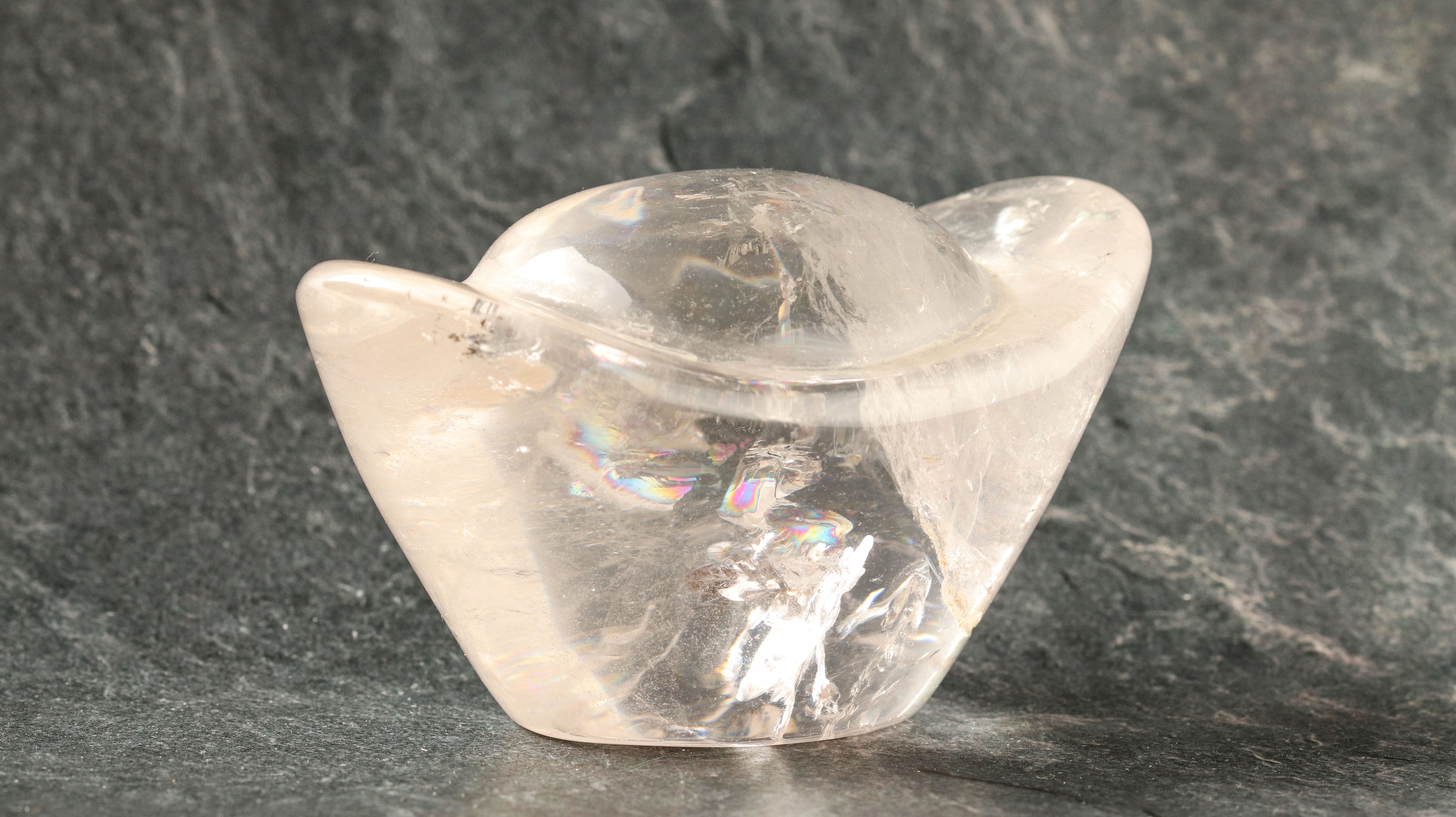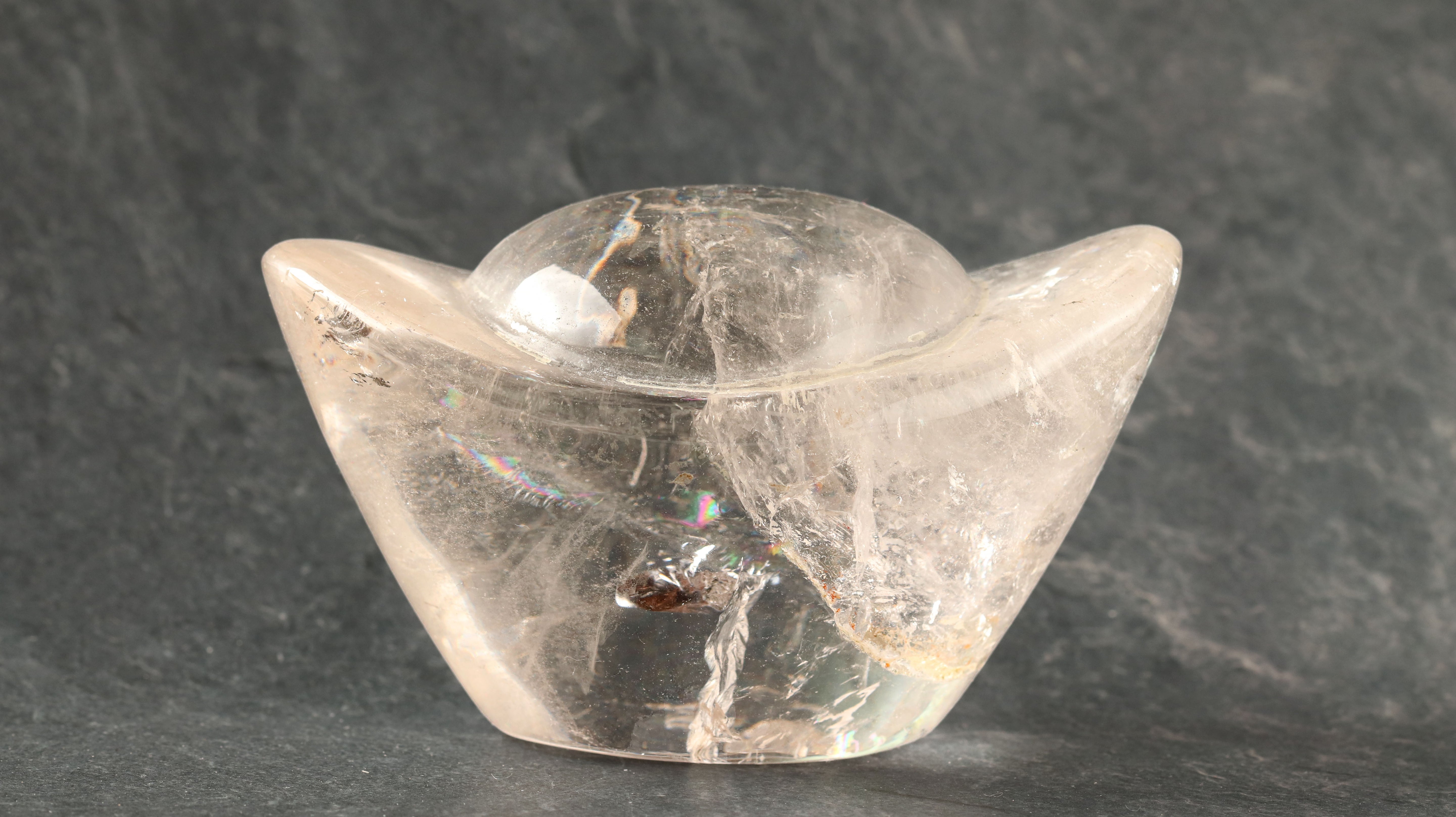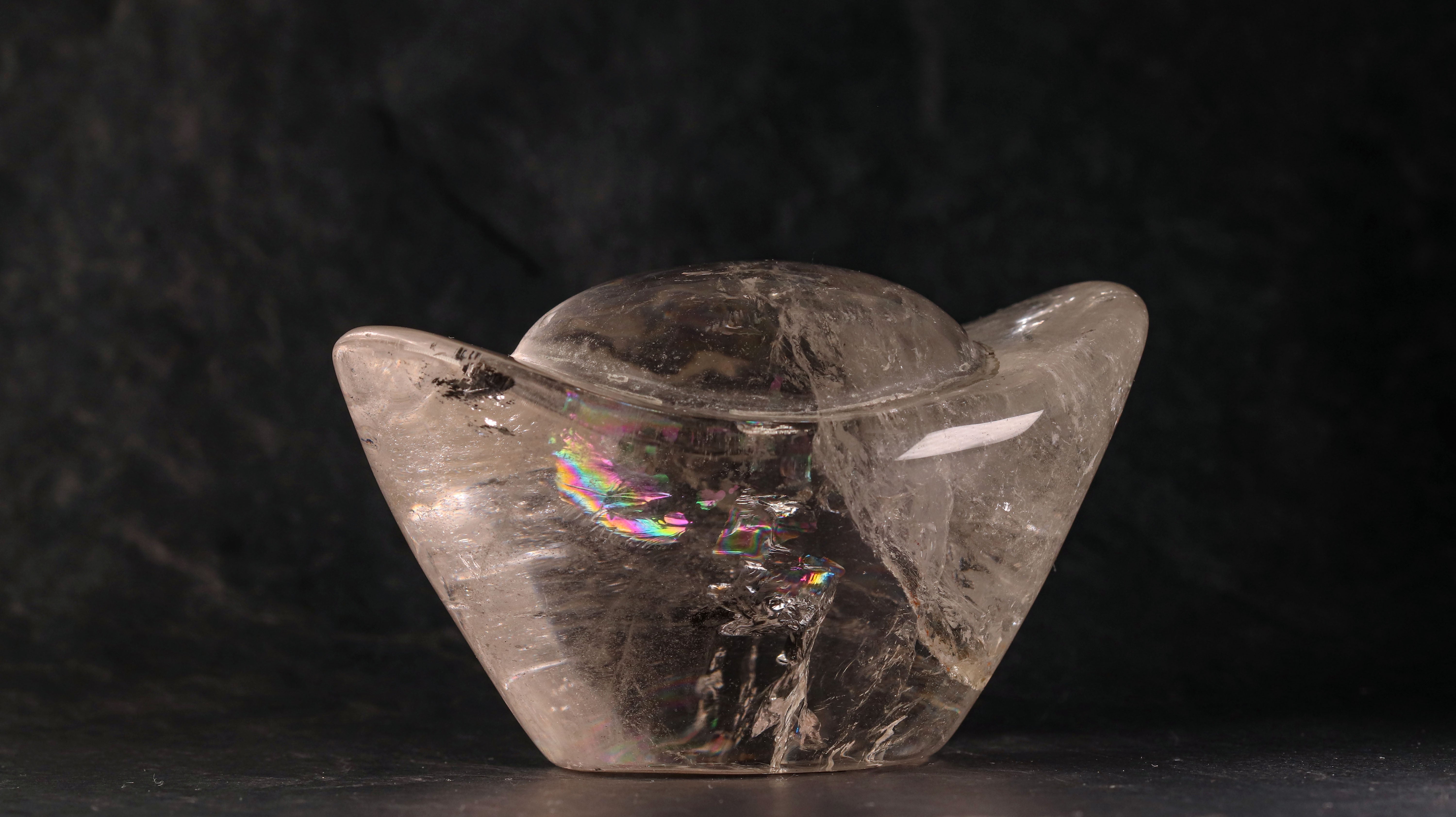 天然水晶 元宝 レインボー入り|特大クリスタル元宝 608g 一点物|財運・繁栄の象徴 風水インテリア|Kou Crystal