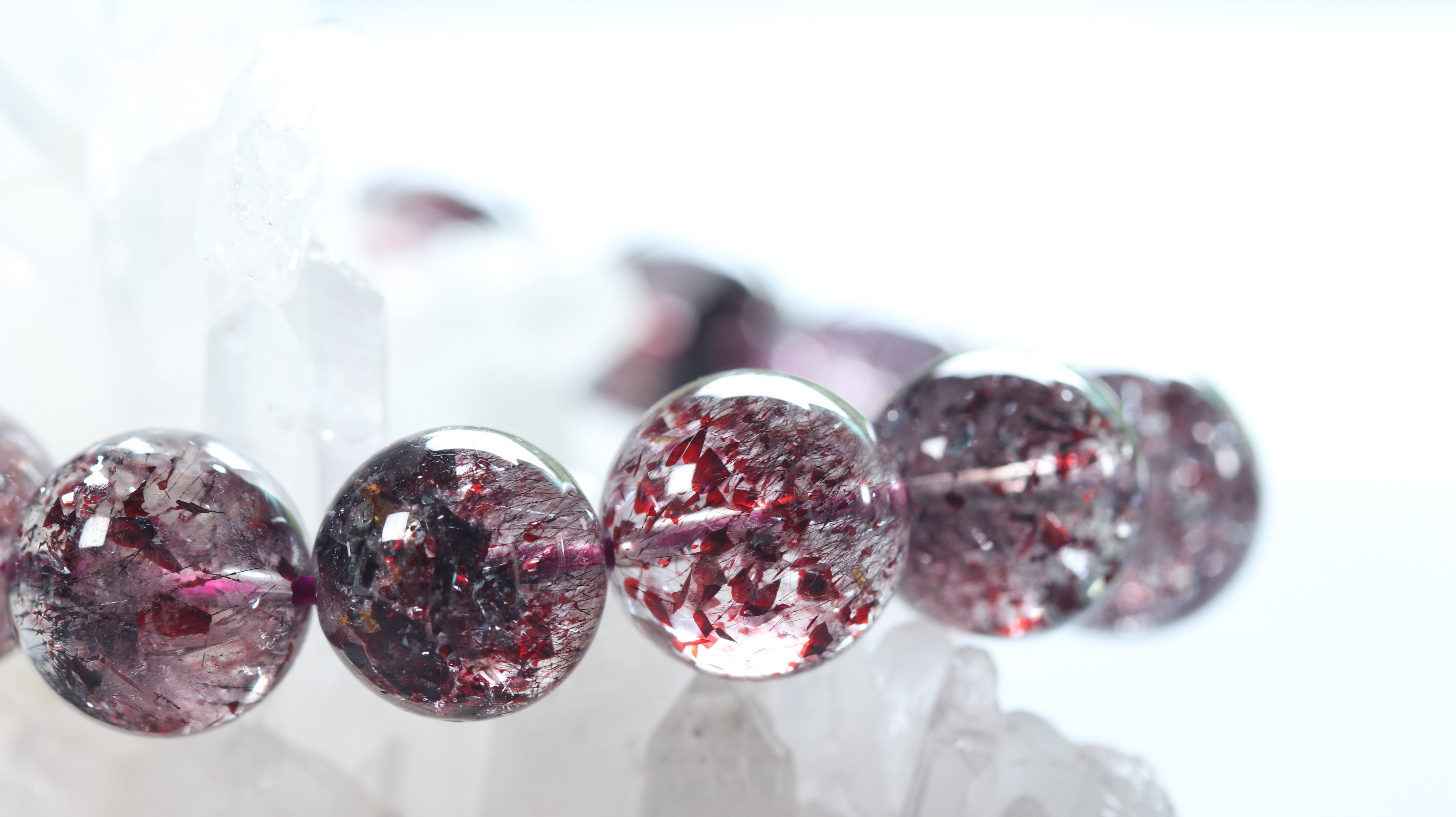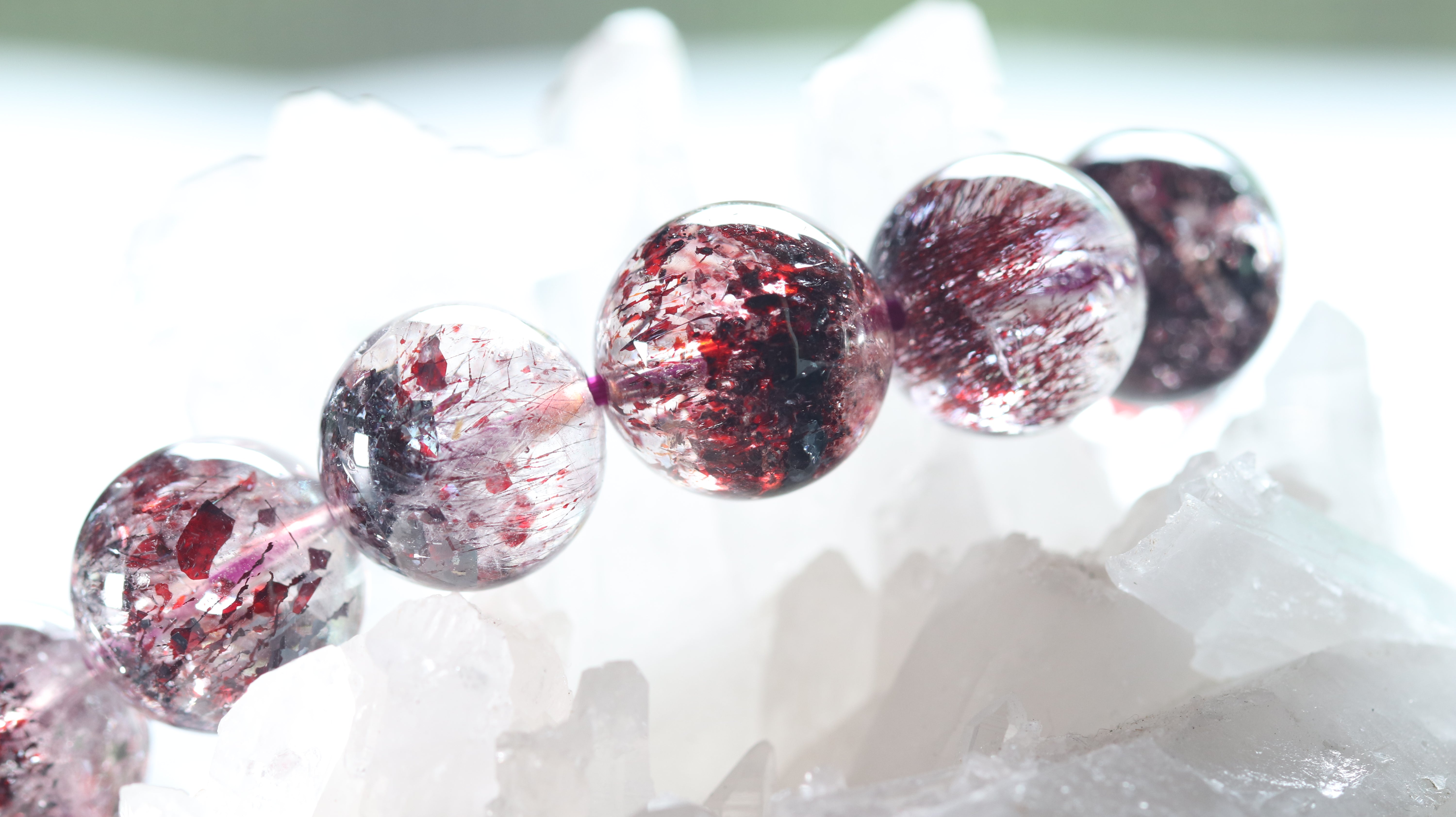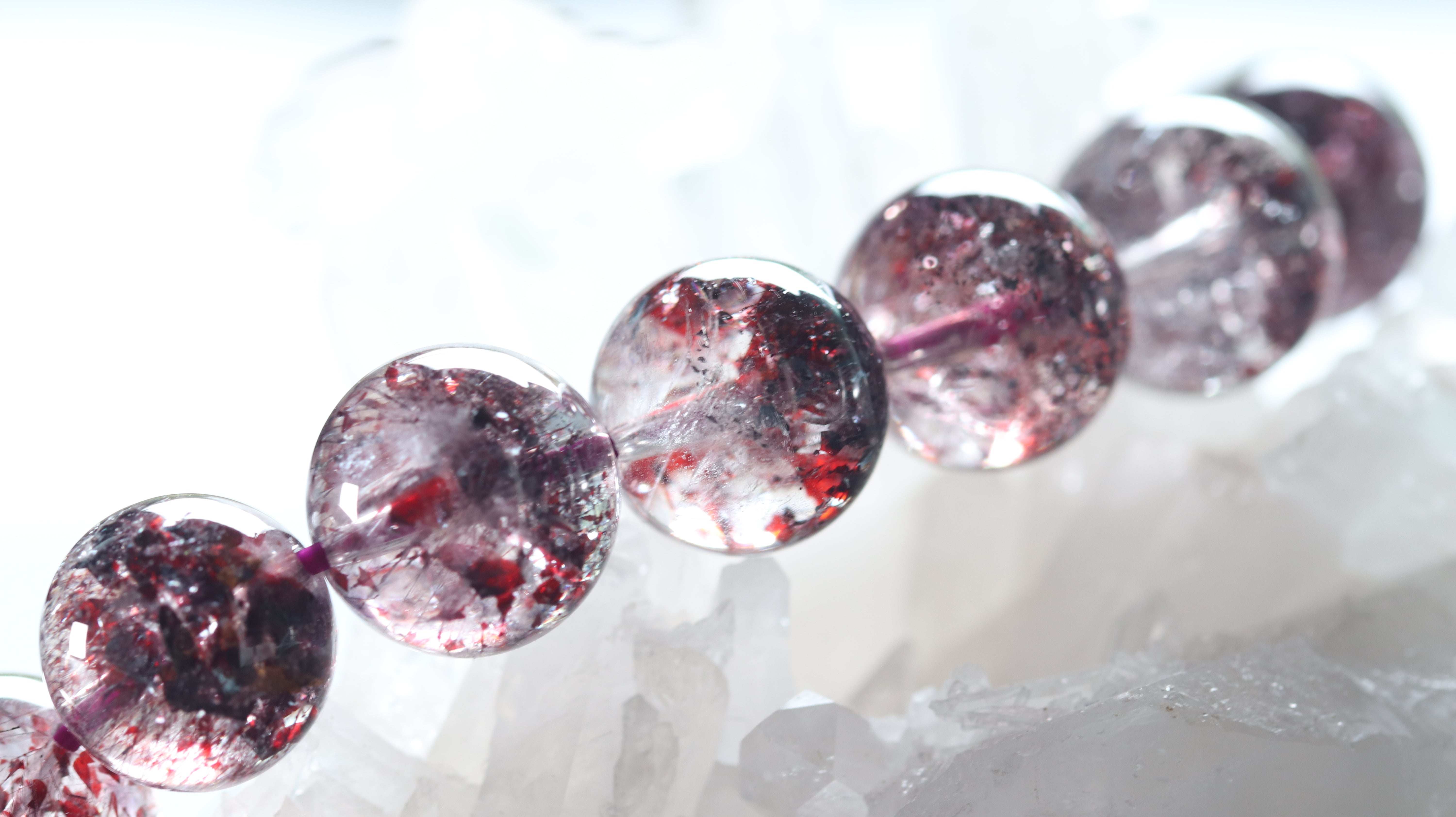 光を借りずとも内側から鮮やかに発色するレピドクロサイトの片鱗を眺めていると、強い生命力、そして自由に息づく石の声が聞こえてくるようです。